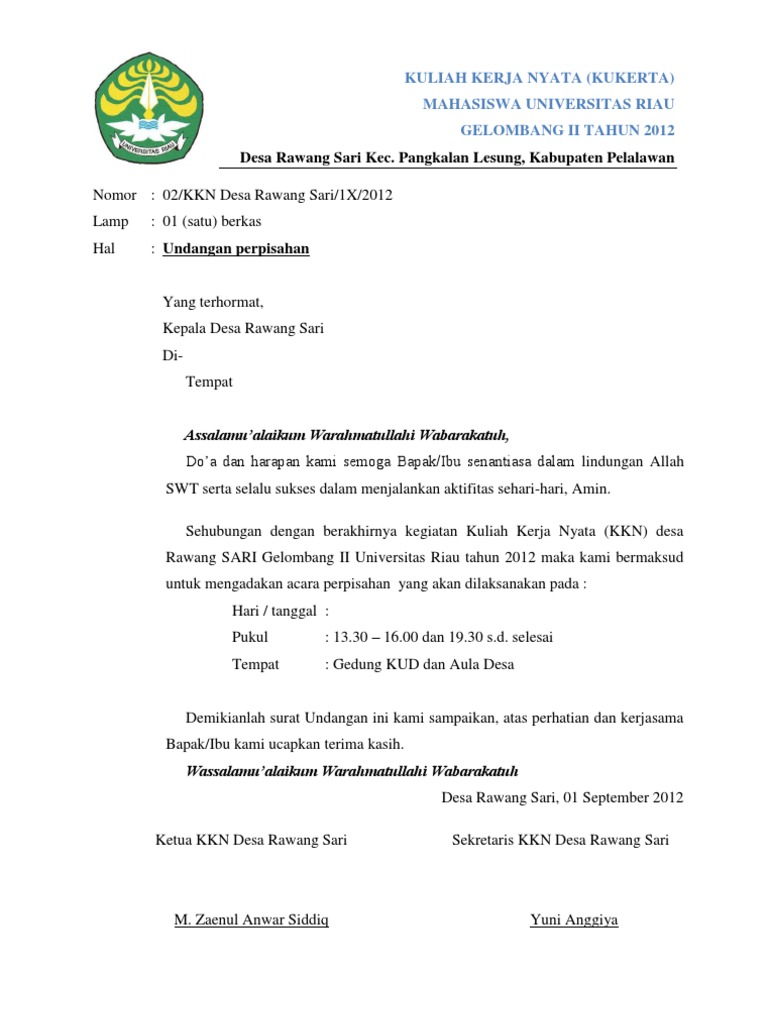 Dari kedua jenis surat ini mempunyai tujuan tersendiri dan tidak dapat digunakan di sembarang tempat. Berikut kami berikan contoh surat undangan resmi yang bisa dijadikan referensi dalam pembuatannya. Misalnya saja melalui panggilan telepon ataupun chatting. Resigh atau pengunduran diri merupakan awal kisah perpisahan seorang karyawan dengan tempat bekerja. A short summary of this paper. Jika anda bekerja di bagian administrasi kegiatan surat menyurat adalah hal yang biasa, dan membutuhkan sedikit karena itulah, kami memberikan beberapa contoh format undangan resmi yang bisa digunakan untuk beberapa acara, misalkan pengajian, rapat. Lalu apa yang kamu lakukan agar orang. Download contoh surat undangan karang taruna.docx. So please help us by uploading 1 new document or like us to download Nah, surat resmi biasa digunakan untuk tujuan acara yang resmi, sedangkan. Berikut ini contoh surat keterangan kerja word dalam bahasa inggris yang dapat anda pergunakan. Contoh surat resmi bahasa sunda undangan kegiatan ujian nasional sekolah. 22 downloads 543 views 89kb size.