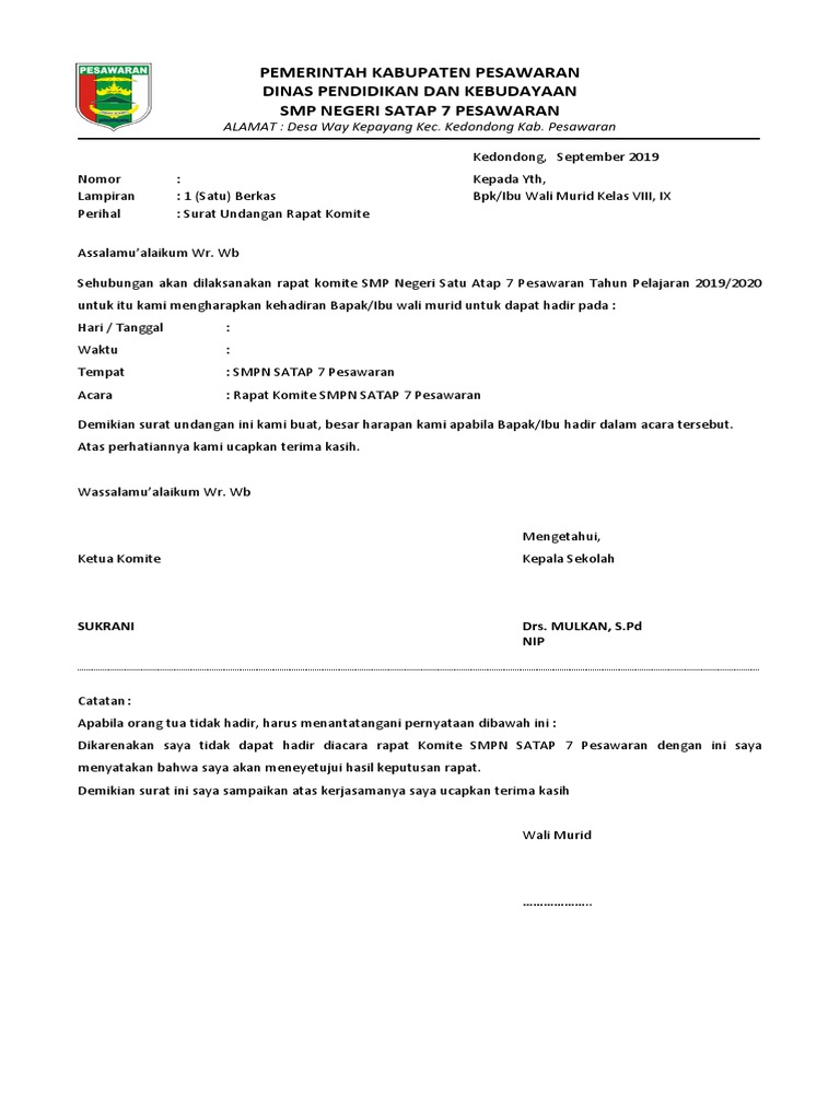 Contoh Surat Undangan Rapat Komite Doc - Format Contoh Surat Dinas Rapat Komite Awal Tahun | Lucn ... - Pada umumnya, surat undangan rapat ini kerapkali digunakan oleh pihak sekolah untuk memberitahukan bahwa akan diadakan suatu kegiatan rapat dengan melibatkan.. Surat undangan sampai kini memang kebanyakan kita tau masih berbentuk fisik meskipun era teknologi sudah berkembang, namun surat dalam hal tersebut tentu mencakup posting yang admin tulis dan bagikan hari ini yaitu contoh surat undangan rapat desa yang mana ini tentu akan sangat. Jakarta, 29 juli 2013 nomor : Pimpinan daerah ikatan mahasiswa nahdlatul ulama sekretariat : Kumpulan contoh surat keterangan penghasilan, kerja untuk kpr, domisili, usaha, pindah sekolah, kuliah dan lain sebagainya, lengkap dengan file docx. Surat ini dibuat biasanya rapat itu bersifat penting dan.
